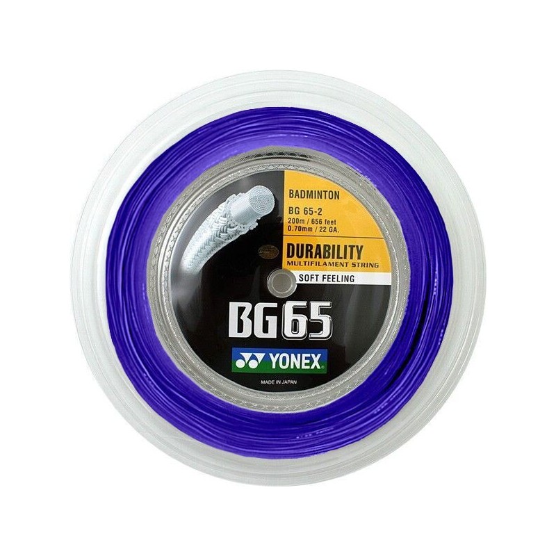 Cordage de badminton Yonex BG65 en bobine de 200 mètres pour des performances optimales sur le court.