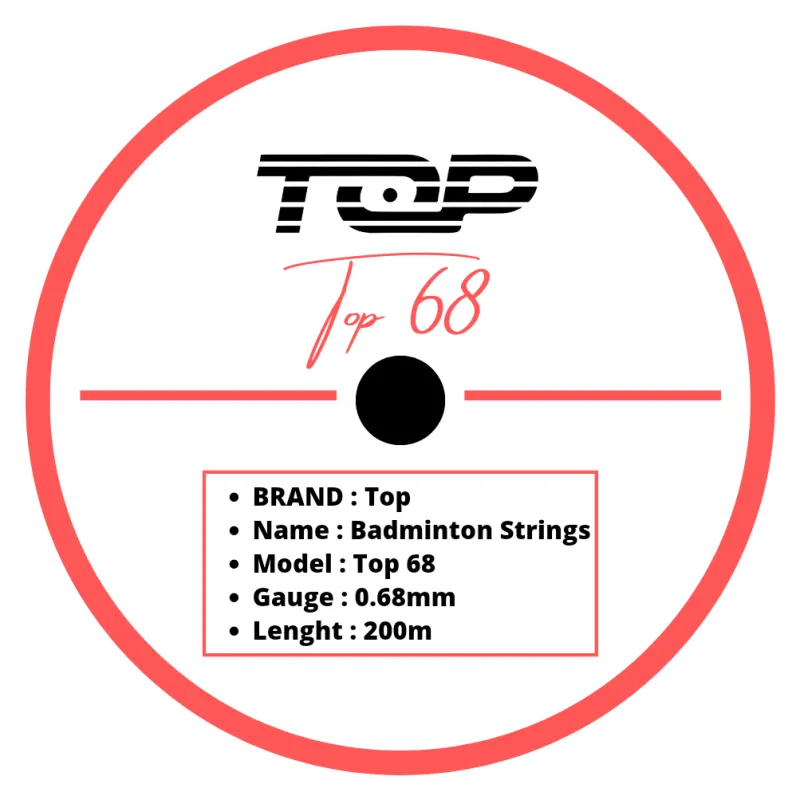 Le cordage de badminton Top 68 (Bobine de 200m) est conçu pour offrir des performances exceptionnelles aux joueurs exigeants. Sa qualité supérieure et sa durabilité en font un choix idéal pour les compétiteurs cherchant à optimiser leur jeu.