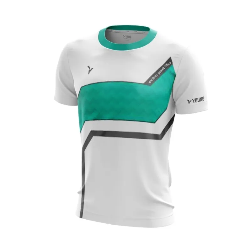 Le T-shirt Young Fresco 9 Col Rond Unisexe en blanc allie confort et style moderne pour un look quotidien.