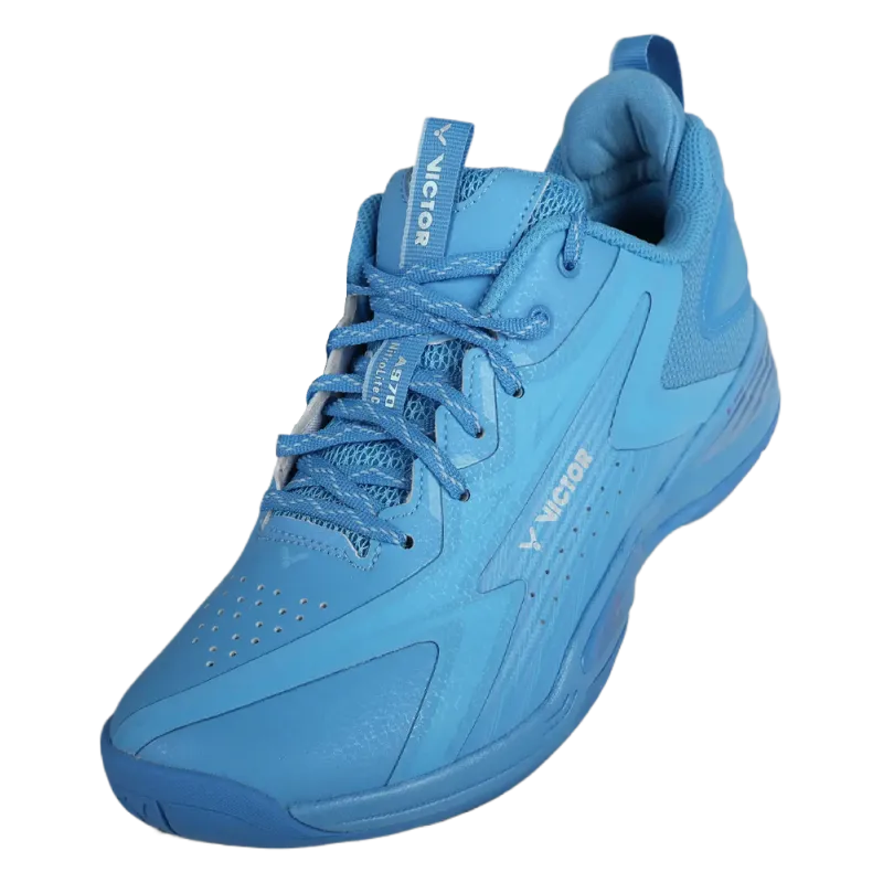 - Chaussures de badminton Victor Indoor A970 NitroLite CPS M (Bleu) offrant Confort et Performance sur le court.