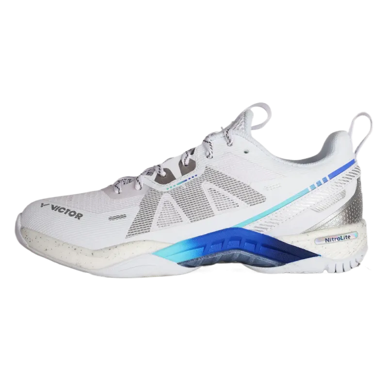 Chaussures de badminton Victor Homme Indoor S82 III NitroLite AF Blanc offrant confort et performance sur le court.